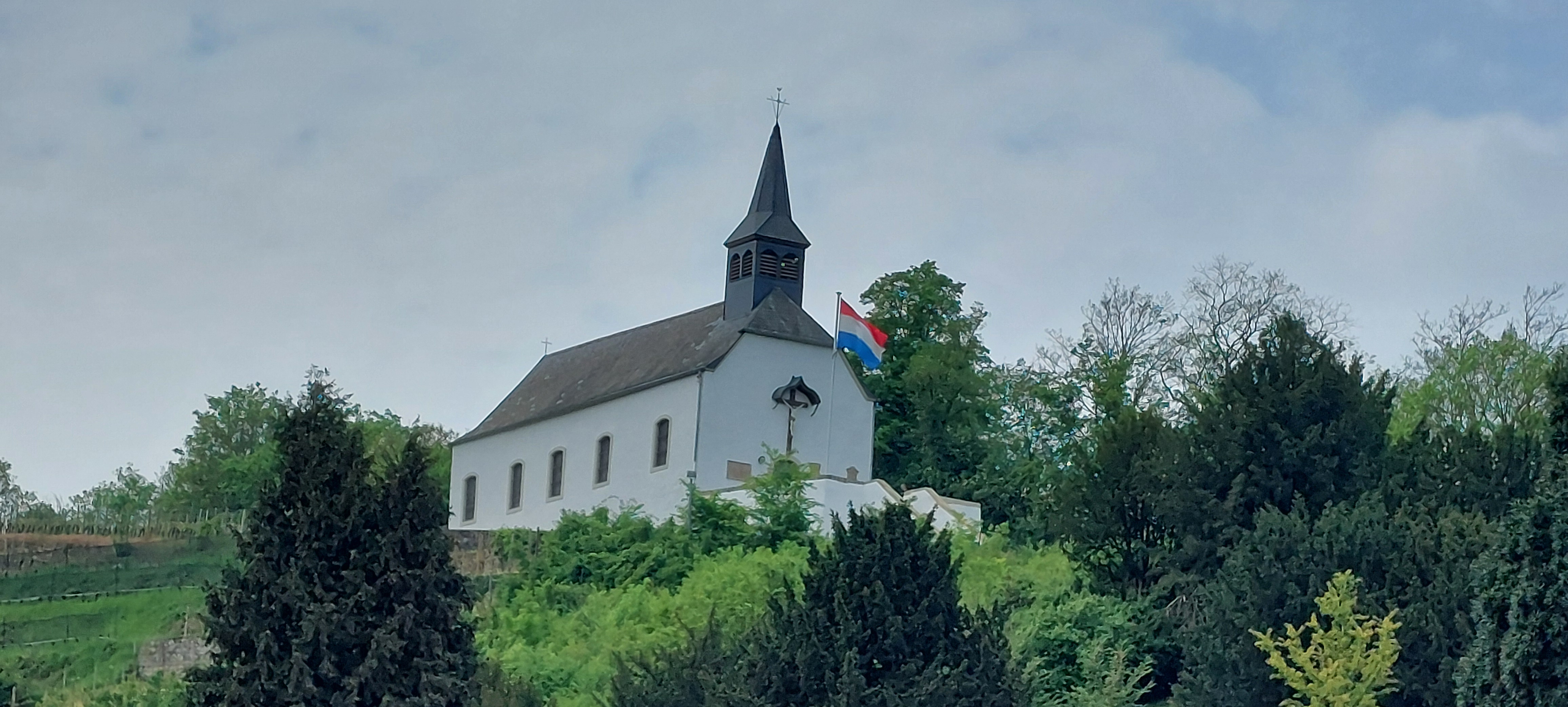 Sie verlassen Grevenmacher an der "Kräizkapell" vorbei in Richtung Potaschberg. Von dort aus ist es nicht mehr weit bis nach Wecker. Der Weg führt durch Wecker und dann über einen Feldweg bis nach Berg. Auf der Höhe des Rathauses biegen Sie rechts in Richtung Betzdorf ab. Nach Betzdorf führt der Radweg nach Olingen und Roodt/Syr, auch hier eine Kirche, die dem hl. Jakobus geweiht ist.